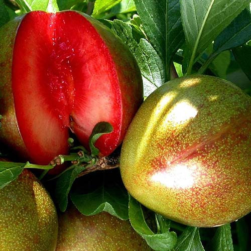 Плумкот (слива-абрикос) Априсалі незвичайний, середньоранній, абрикосово-сливовий гібрид німецької селекції, отриманий шляхом перехресного запилення. Склад: 50% диплоїдна злива, 50% абрикос. Дерево – зацвітає пізно, середньоросле, до 2,5 метрів на зріст. Дерево врожайне, схильне до перевантажень. Плоди – фрукт важить близько 40 – 60 г. Колір сливовий, темно-червоний. Форма кругла. Шкірка гладка, як у сливи, але товста, як у абрикоса. Від сливи плоди взяли кислинку, від абрикосу солодощі. М'якуш волокнистий, середньо соковитий, ароматний. Знімна зрілість досягають зрілості в другій половині липня. Морозостійкість та стійкість до хвороб – зимує добре. Стійкий до моніліозу та грибкових хвороб.