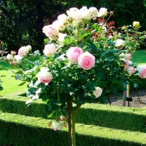 Опис характеристик штамбової троянди сорту Едем: · штамб висотою 120-130 см, з двома щепленнями; · троянди пишні, чашоподібні; · діаметр квітки до 10 см; · форма старовинна, англійська; · аромат - сильний, солодкий; · цвітіння з червня по вересень; · сорт багаторічний; · морозостійкість - середня зимує в ґрунті під укриттям.